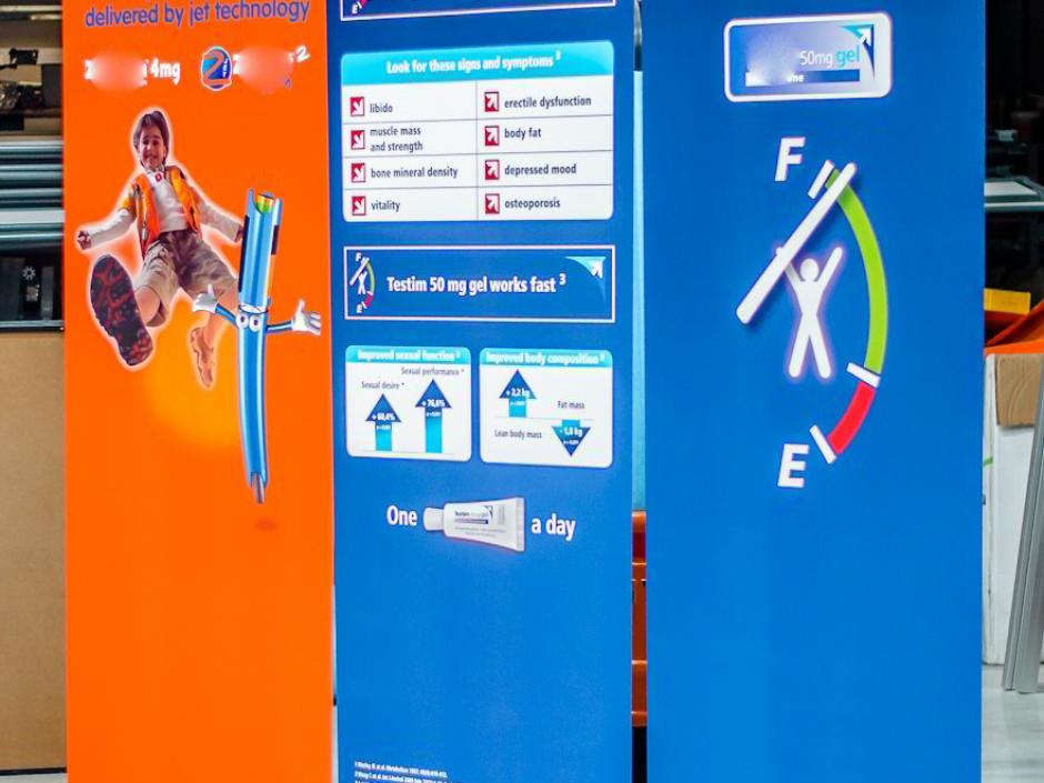 Afdruk en montage van een Maxibit popup wall voor één van onze vaste klanten Novartis.